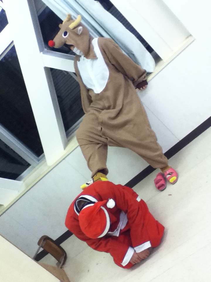 演劇部 明日学校でクリスマス会があって劇をします。バスケの方で忙しく全然練習にも参加できなかったのに今日突然トナカイ役を命じられました森永です。セリフもなくほんの少しの役なんですけど大丈夫なのかこれ。不安で堪らないですが明日頑張りたいと思います。
